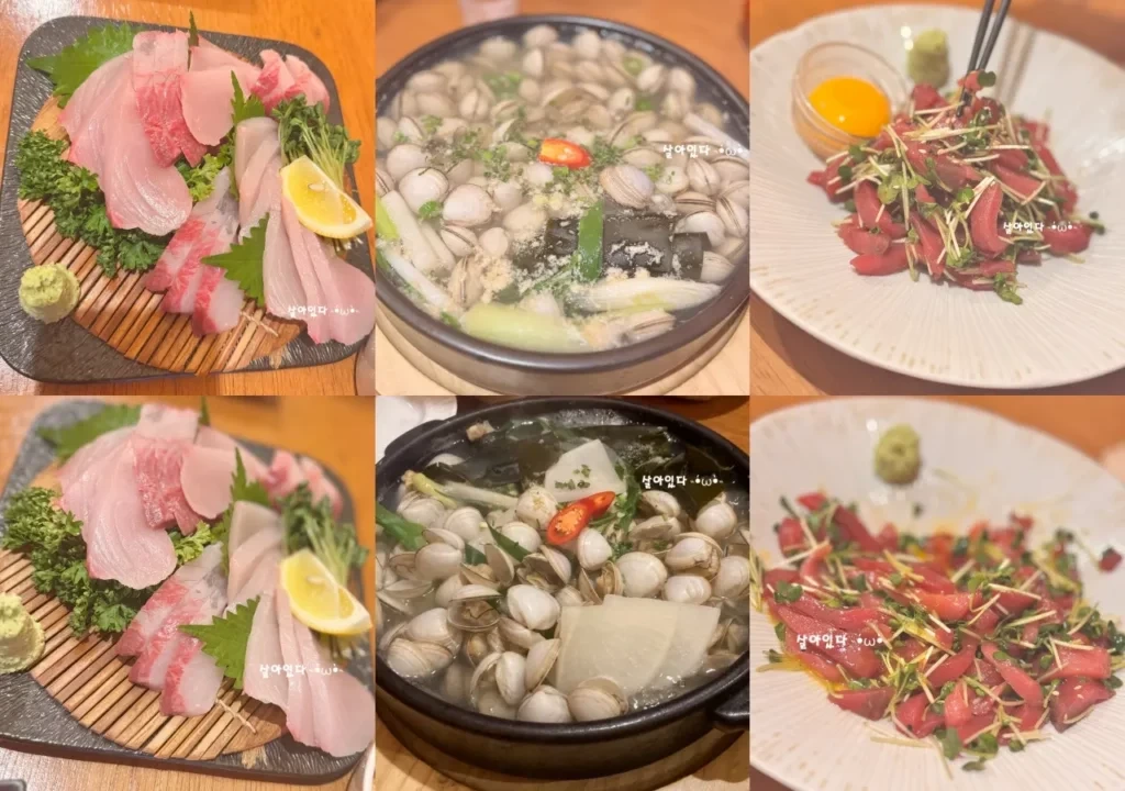 - 대방어: 통통하고 두툼하게 썰린 신선한 대방어는 적당히 기름지면서 쫄깃하고 고소한 맛이 일품입니다. 해산물을 좋아하신다면 꼭 한번 드셔보시길 추천합니다.