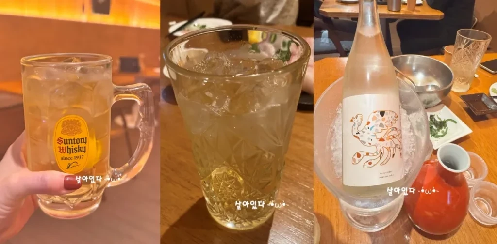 카나메에서는 다양한 사케를 맛볼 수 있는데, 특히 이날의 추천 사케는 약간 높은 도수에 스파클링이 있어 가볍게 마시기 좋았습니다. 사케 초보자도 부담 없이 즐길 수 있는 맛과 가벼운 느낌이 인상적이었습니다.