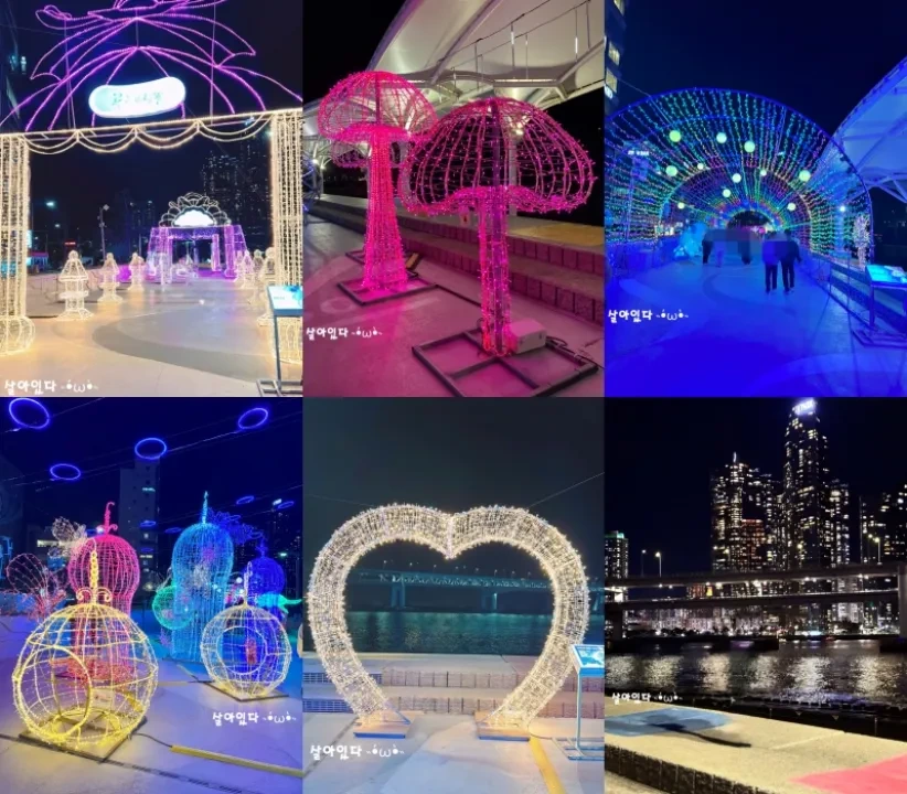 거대한 빛의 터널과 예술 작품들로 구성된 루미나리에는 밤하늘에 환상적인 불빛을 수놓아, 주변을 환하게 비추고 있었어요. 형형색색의 불빛이 조화를 이루며 터널 속을 걷는 것만으로도 낭만적인 분위기가 물씬 느껴졌습니다. 덕분에 한적하고 조용하게 축제를 즐기며, 여유로운 산책과 함께 멋진 사진도 남길 수 있었습니다.