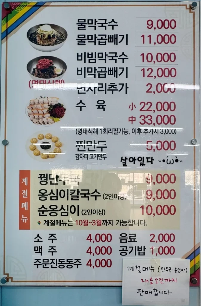 - 물막국수 (보통): 9,000원