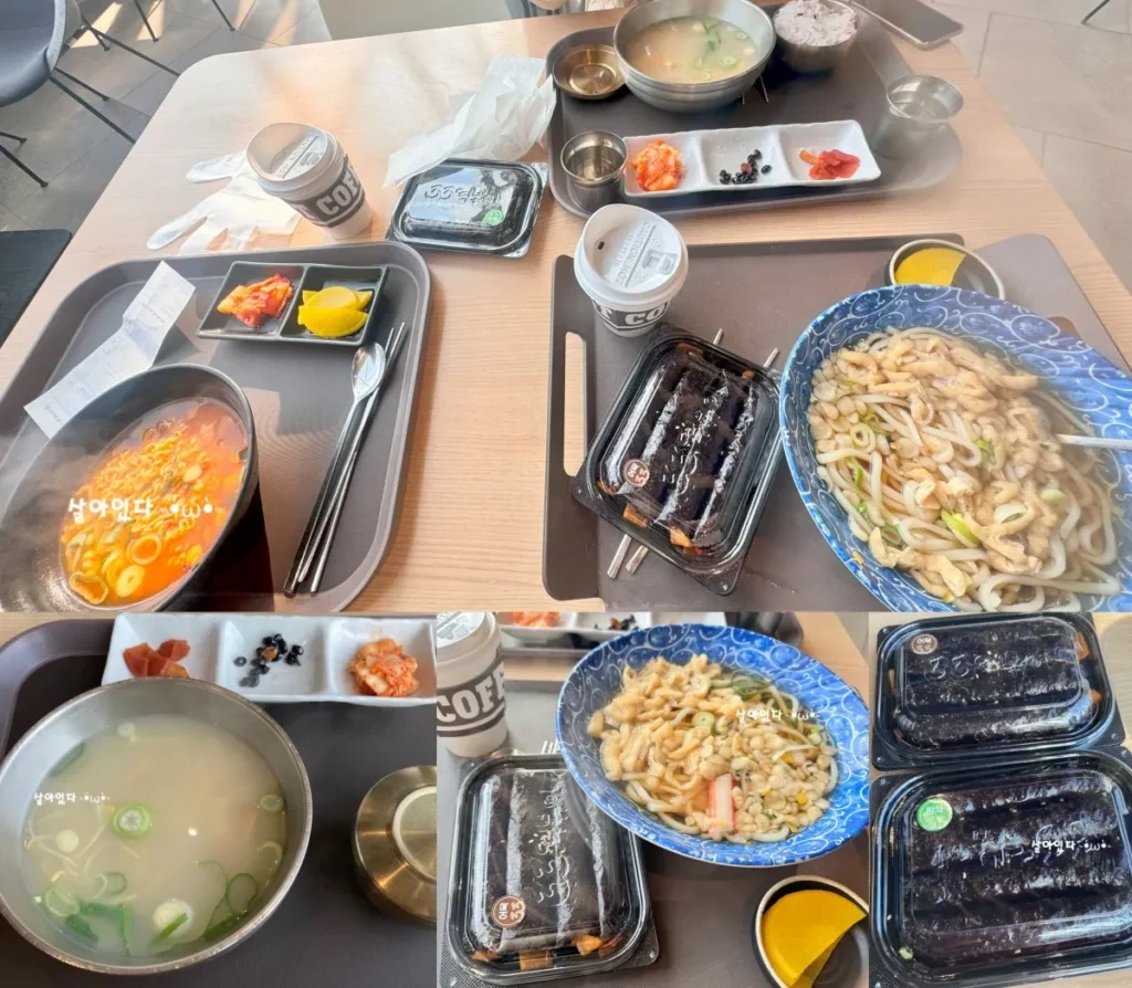 내린천 휴게소의 메뉴는 매우 다양했습니다. 일행들은 각자의 입맛에 맞게 식사를 주문했는데, 음식들은 깔끔하고 정갈하게 담겨 나왔습니다. 요즘은 휴게소도 각자의 시그니처 메뉴를 선보이며 휴게소 맛집으로 자리 잡는 경우가 많아졌죠. 그러나 우리가 먹은 메뉴는 특별하진 않았습니다. 보통의 휴게소 음식 맛이었지만, 나쁘지 않았고 여행 중간에 잠시 쉬며 식사를 하기에 충분했습니다.