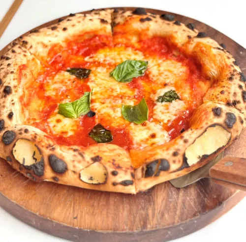 • 비주얼: 도우는 나폴리식 화덕피자 스타일로 도톰하면서도 겉은 바삭하게 구워졌고, 신선한 토마토소스와 바질이 올려져 심플하지만 정통의 멋이 느껴짐.