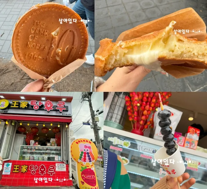 마지막으로 방문한 곳은 옥수수를 다양하게 판매하는 황남옥수수였습니다. 옥수수를 튀겨 매콤한 마요소스를 뿌려주는 기본 황남옥수수와 달달한 아이스크림이 포함된 옥수수 과자를 시도해 보았는데, 음료와 함께 즐기기 좋은 메뉴였습니다. 옥수수의 바삭함과 달콤함이 잘 어우러져 먹방 투어를 마무리하는 완벽한 디저트였습니다.