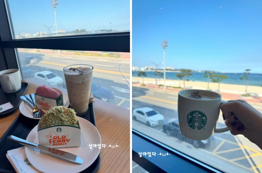 바다를 보며 따뜻한 커피와 달콤한 디저트를 즐길 수 있는 스타벅스 포항송도점은 힐링하기 좋은 카페였습니다. 통유리를 통해 펼쳐진 바다 뷰는 여유롭고 편안한 시간을 선사해 주었습니다.