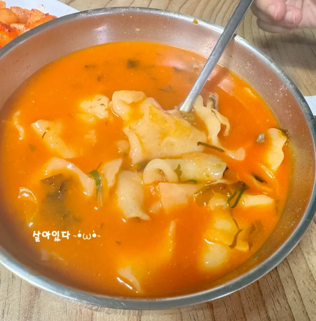 수제비는 손으로 직접 뜯어 만든 손수제비로, 쫄깃한 식감이 매콤하고 알싸한 육수와 잘 어울립니다. 매운 수제비를 먹을 때는 꼭 공기밥을 추가해서, 남은 육수에 밥을 말아 먹는 걸 추천드립니다. 매콤한 육수는 술을 마시지 않아도 해장 느낌을 주는 그런 맛입니다.