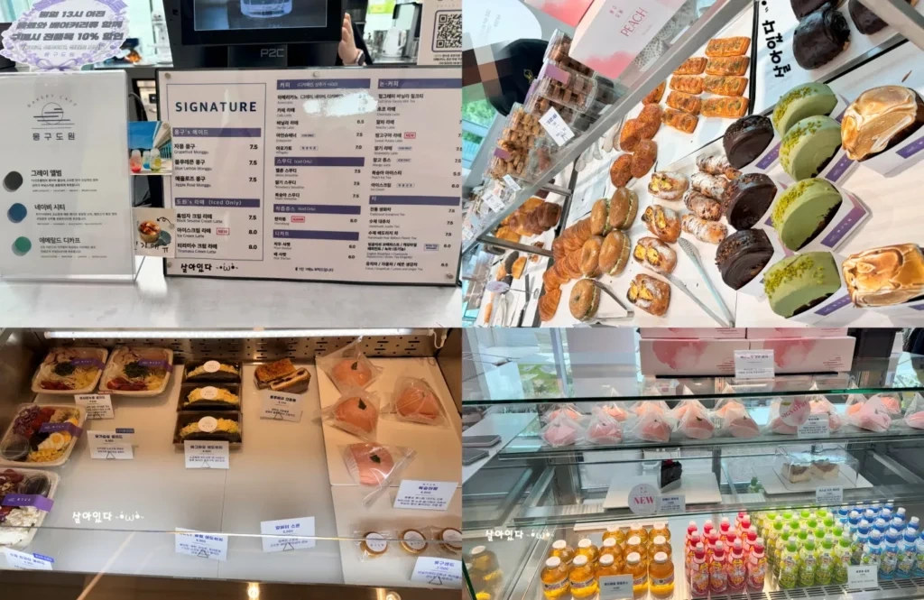 몽구도원은 다양한 베이커리와 카페 메뉴를 제공하고 있습니다. 메뉴는 1층에서만 주문이 가능하므로, 원하는 좌석을 선택한 후 1층에서 주문하시면 됩니다.